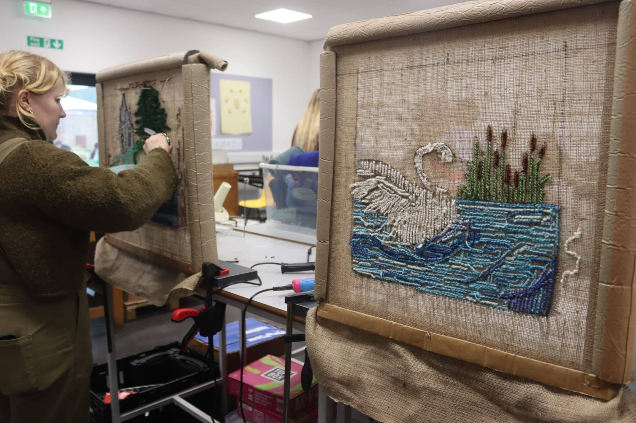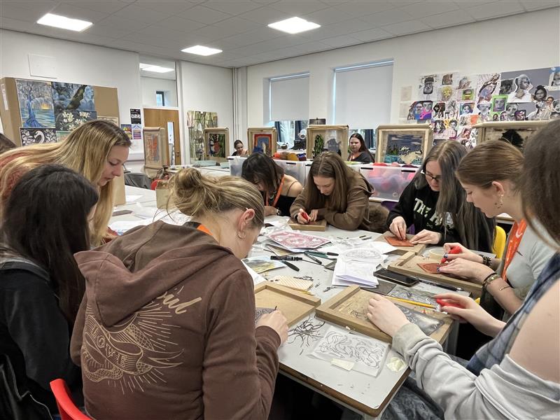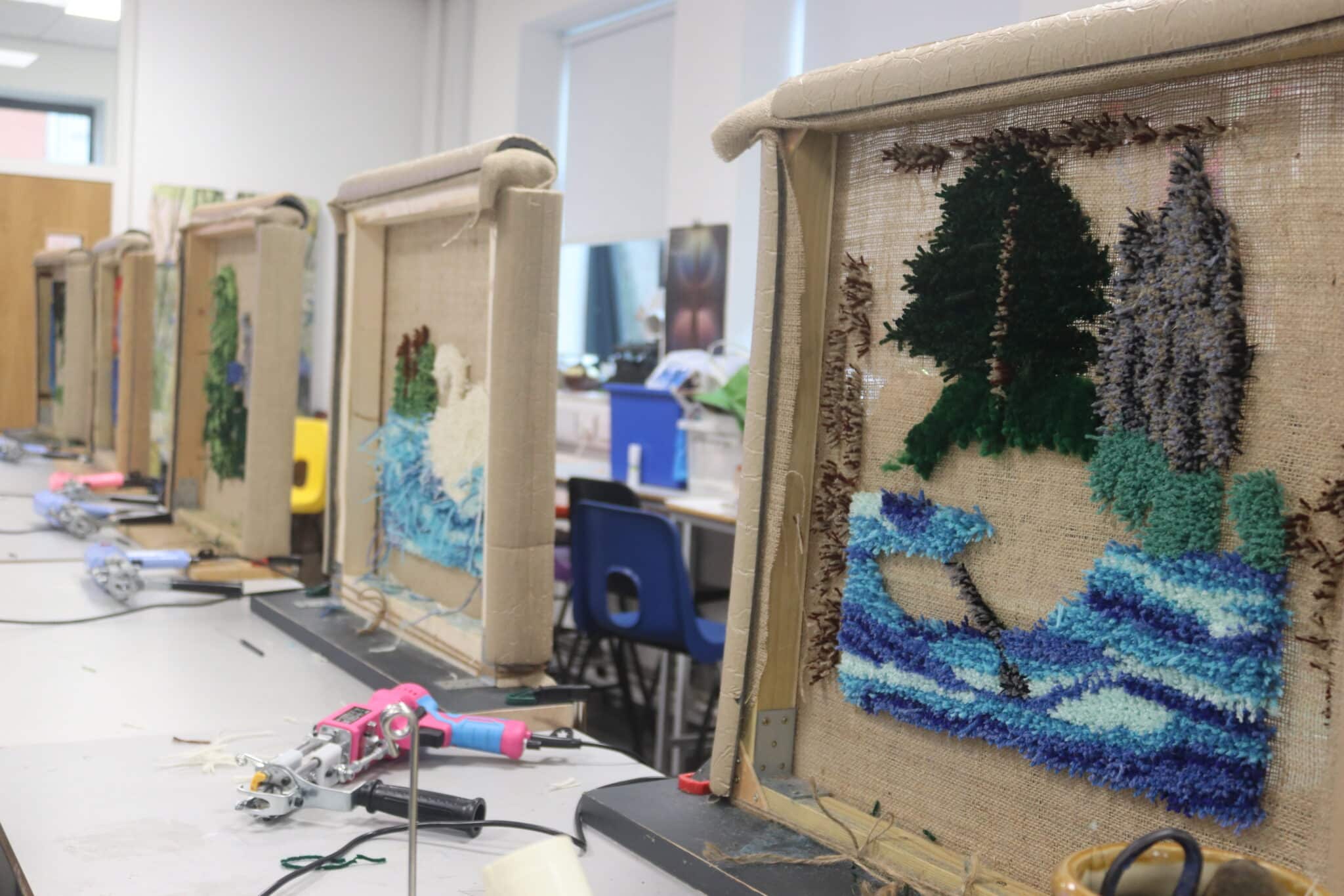 The day saw first and second year students get the opportunity to work with West Midlands-based Stan’s Café and Studio MEAD from the Brook Arts Hub, a local arts hub in Shottery, Stratford-upon-Avon, on rug tufting and screen printing activities.